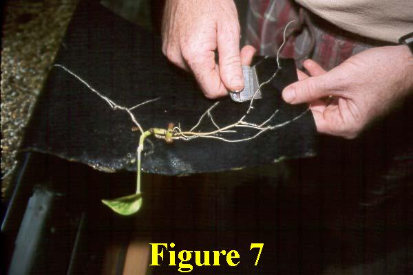 Then we would remove the black felt material from the front of each tank and carefully cut away the plant roots that clung to its fibers, as shown in Figure 7.