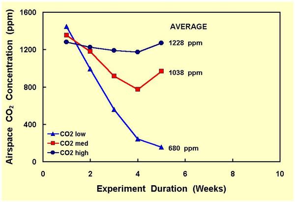 In the totally-sealed unit, however, this perturbation could not be felt; and its internal CO2 concentration continued to decline.